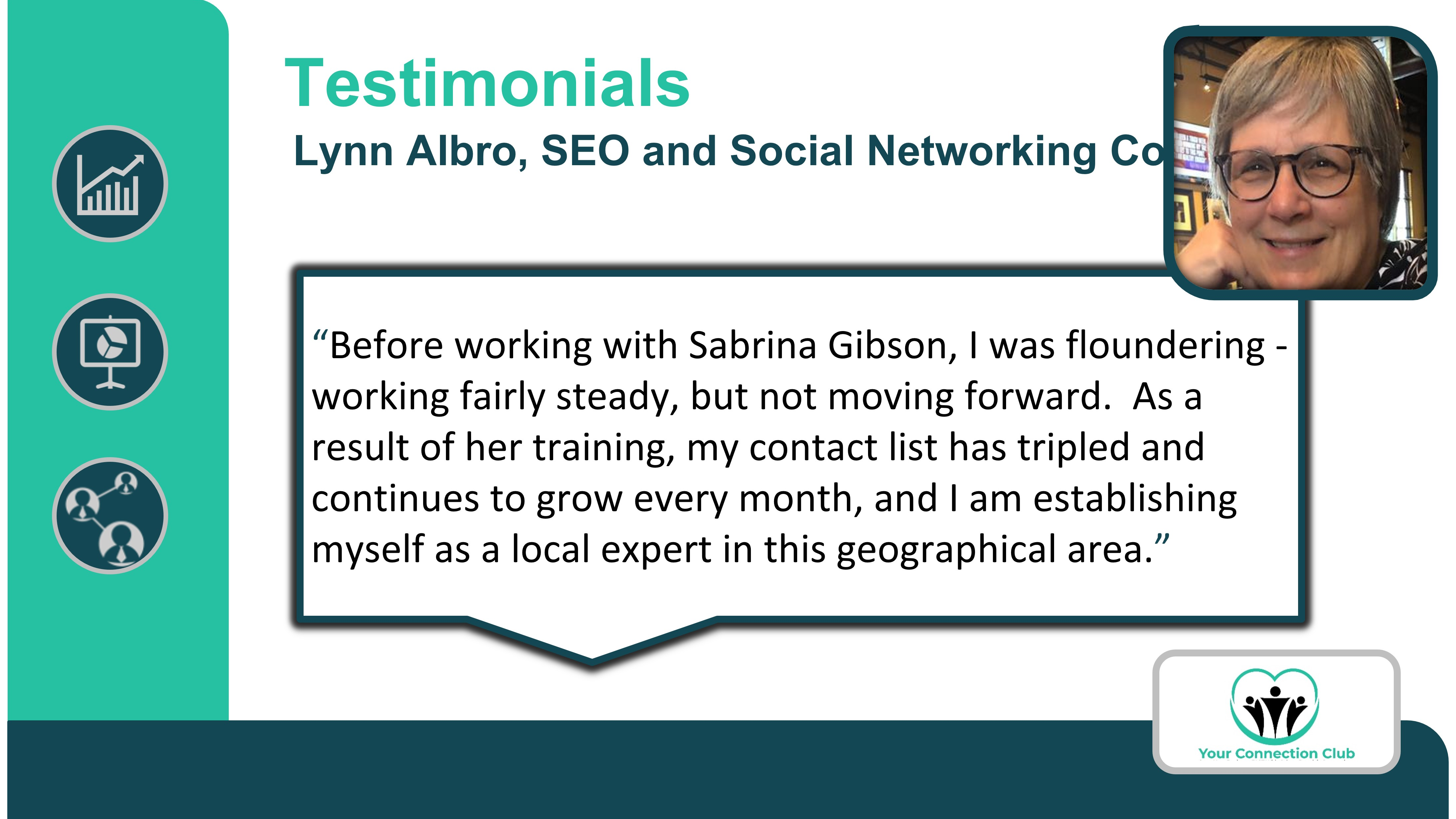 “Your Connection Club” is a marketing and business development company that specializes in helping startup entrepreneurs rapidly scale their brands. In addition to offering complimentary business guides, the company provides valuable services such as virtual networking sessions, referral programs, and podcast management. With 22 years of experience, “Your Connection Club” has successfully assisted thousands of small business owners in improving their sales and marketing techniques.